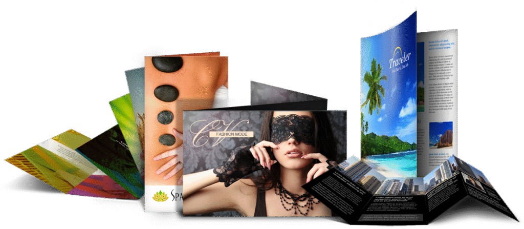 Brochures, flyers, catalogs, magazines, profiles, posters, menus, and books.